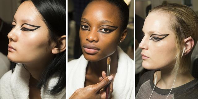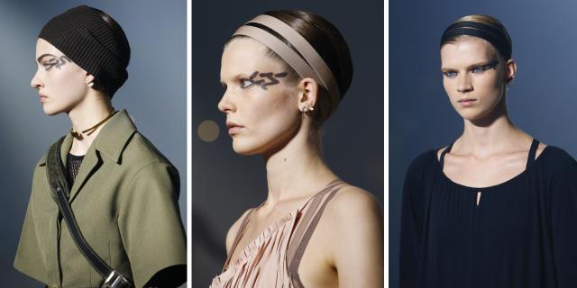 Креативный директор по макияжу Christian Dior Питер Филипс создал естественные образы с акцентом на глаза. Филипс черным кайалом нарисовал графичные узоры на висках моделей, повторяя таким образом движения танцоров, которые были неотъемлемой частью постановочного шоу.