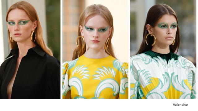 Визажисты, люди творческие, и те, кому в макияже «без макияжа» не хватило креативности, выплеснули всю свою творческую натуру с помощью черного кайала, в изобилие кристаллов, глиттера, сусального золота, причудливых ярких мазков и цветных пятен в неожиданных местах. Другие визажисты продолжали креативно переосмысливать 60-е, покрывая, чуть ли не пол лица цветными тенями.