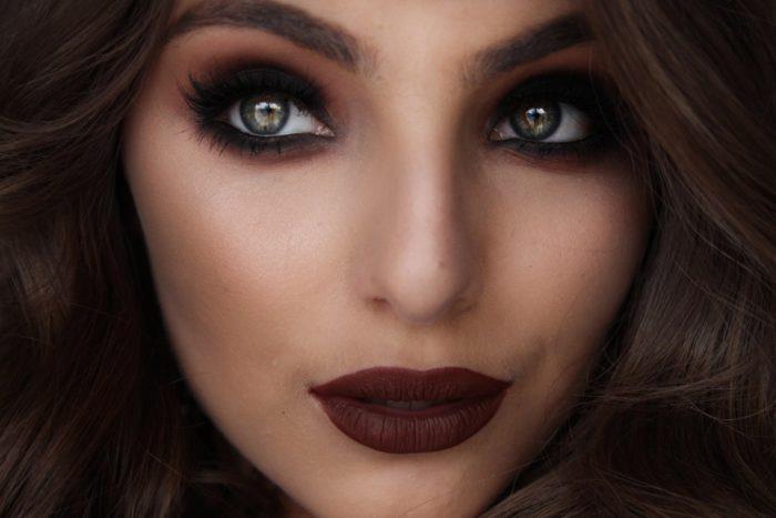 Обладательницам зеленых глаз подойдут тени, которые содержат красный пигмент: пурпурные, лиловые, бордовые, фиолетовые оттенки. Здесь важно помнить о том, что красный пигмент теней может придать глазам воспаленный вид. Ресничный контур, слой туши – удачное решение, чтобы ликвидировать действие красных пигментов на белок глаза.